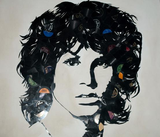 Jim Morrison in broken vinyl, created by Mr. Brainwash for one of his exhibitions, he also created numerous other artist from this style, his works include artists such as Jay-z, Biggie smalls (Notorious B.I.G), Barry White, James brown etc. |